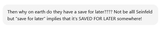 - Me: …moving on. (Guys, don’t listen to an AI that is WRONG. I don’t know why I keep asking it for instructions, but here we are.)